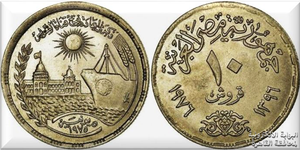 وفي عصر الرئيس السادات، صدرت عدد من العملات منها عملة فضية تذكارية بقيمة 10 قروش بمناسبة إعادة فتح قناة السويس في عام 1976.