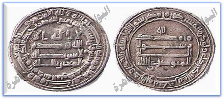 فكتب على الظهر في الوسط: لله محمد رسول الله المتوكل على الله