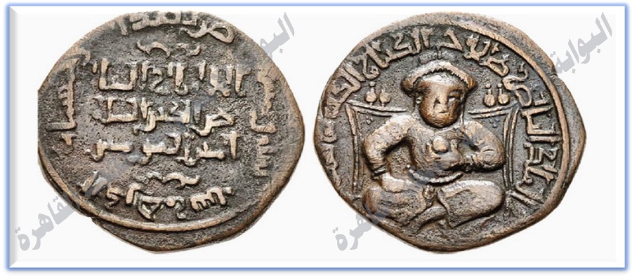 ومن أبرز الدراهم التي سكها صلاح الدين سنة 586ه درهم من النحاس بعد انتصاره على الصلبيين في موقعة حطين سنة 583هـ، ونقش عليه صورته وهو جالس جلسة القرفصاء على كرسي عرش بسيط، تأكيدًا على سيطرته على مصر وبلاد الشام والأراضي الحجازية.