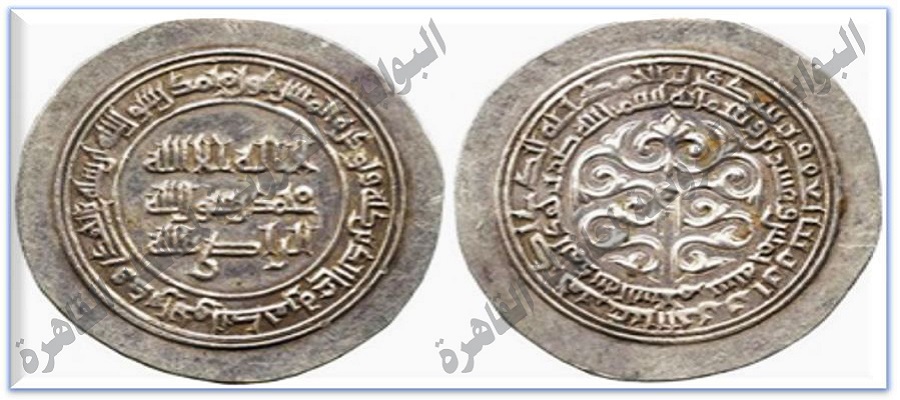وكتب على الطوق الداخلي: بسم الله ضرب هذا الدرهم بمدينة السلام سنة خمس وعشرين وثلاثمائة.