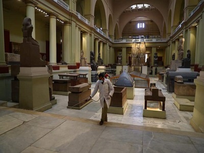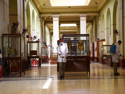 بدأت وزارة السياحة والآثار صباح يوم الإثنين الموافق 23 / 3 / 2020 في أعمال تعقيم وتطهير عدد من المتاحف الأثرية على مستوى جمهورية مصر العربية، شملت المتحف المصري بالتحرير، ومتحف الأقصر، ومتحف أسوان، ومتحف طنطا، وذلك ضمن حملة الوزارة لتعقيم وتطهير جميع المتاحف والمواقع الأثرية للحماية والوقاية من تداعيات فيروس كورونا المستجد (covid-19)، في ظل التدابير والإجراءات الاحترازية التي تتخذها الدولة لمواجهة الفيروس.