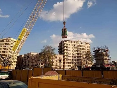 تركيب أول أجزاء مسلة الملك رمسيس الثاني بميدان التحرير