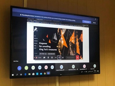 عقد الدكتور/ خالد العناني وزير السياحة والآثار يوم الجمعة الموافق 27 / 3 / 2020 اجتماعاً عبر الفيديو كونفيرانس من مقر الوزارة بالزمالك مع فريق عمل شركة مايكروسوفت المسؤل عن إنشاء وتصميم الموقع الإلكتروني الخاص بالمتحف المصري الكبير، وذلك بحضور الدكتور/ الطيب عباس مدير المتحف للشئون الأثرية، وفريق قسم تكنولوجيا المعلومات بالمتحف، وخلال الإجتماع قام مصممو الموقع بإستعراض شكل الموقع ومحتواه وأبوابه بما يتيح الموقع لمتصفحيه التعريف بالمتحف وتاريخ إنشائه ومسارات الزيارة بداخله وقاعاته المختلفة واهم القطع المعروضة بها، بالإضافة إلى الخدمات التي يقدمها المتحف لزائريه مثل المطاعم والكافيتريات ودور السينما والمسرح ورحلات الواقع الافتراضي ومتحف الطفل وغيرها من الخدمات.