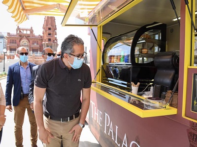 وعلى هامش الزيارة تفقد الوزير منطقة الخدمات السياحية المقدمة للزائرين والموجودة بحدائق القصر وحول المساحات المكشوفة المحيطة به والتي تضم عربة بطراز مستوحى من الطابع التاريخي للقصر وتحترم البيئة المحيطة لتقديم مشروبات ومأكولات خفيفة للزائرين، وكافتيريا ومطعم ذات طراز مميز يحترم البيئة الآثرية للقصر لتقديم تجربة مميزة للزائرين حيث تعكس الخدمات ومقدميها الأجواء التاريخية لبدايات القرن العشرين مثل زي العاملين بالطراز القديم والتي توحي بالفترة الزمنية للقصر.