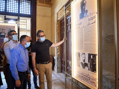 وتفقد وزير السياحة والآثار الموقع العام للقصر وقاعاته المختلفة، ومنطقة البانوراما (السطح)، كما تفقد اللوحات الإرشادية المعروضة بالقصر التي هى احد العناصر المكونة لمعرض تاريخ حي مصر الجديدة، بالإضافة إلى تفقده للعربات والبوابات الإلكترونية للقصر ونظام التأمين الإلكتروني ونظم الإضاءة الخاصة بالعرض وأعمال تجهيز شاشات العرض المالتيميديا لعرض صور وأفلام وثائقية عن اعمال بناء حي مصر الجديدة وقصر البارون وشكل الشوارع والمباني والمحلات والسيارات الخاصة وعربات الترام وغيرها من مظاهر الحياة في الحي في ذلك الوقت، كما تعرض الشاشات أيضاً صور للبارون امبان نفسه وشريكه نوبار باشا، والمهندس الفرنسي ألكسندر مارسيل الذي قام بتصميم القصر، بالإضافة إلى تفقد أحد عربات ترام مصر الجديدة القديمة التي تم عرضها بحديقة القصر بعد ترميمها، والسيارات القديمة التي كانت تسير في شوارع القاهرة خلال عشرينات وثلاثينات القرن الماضي التي تم وضعها بالحديقة لتعطي صورة حية عن حي مصر الجديدة ونمط الحياة بها خلال هذه الفترة.